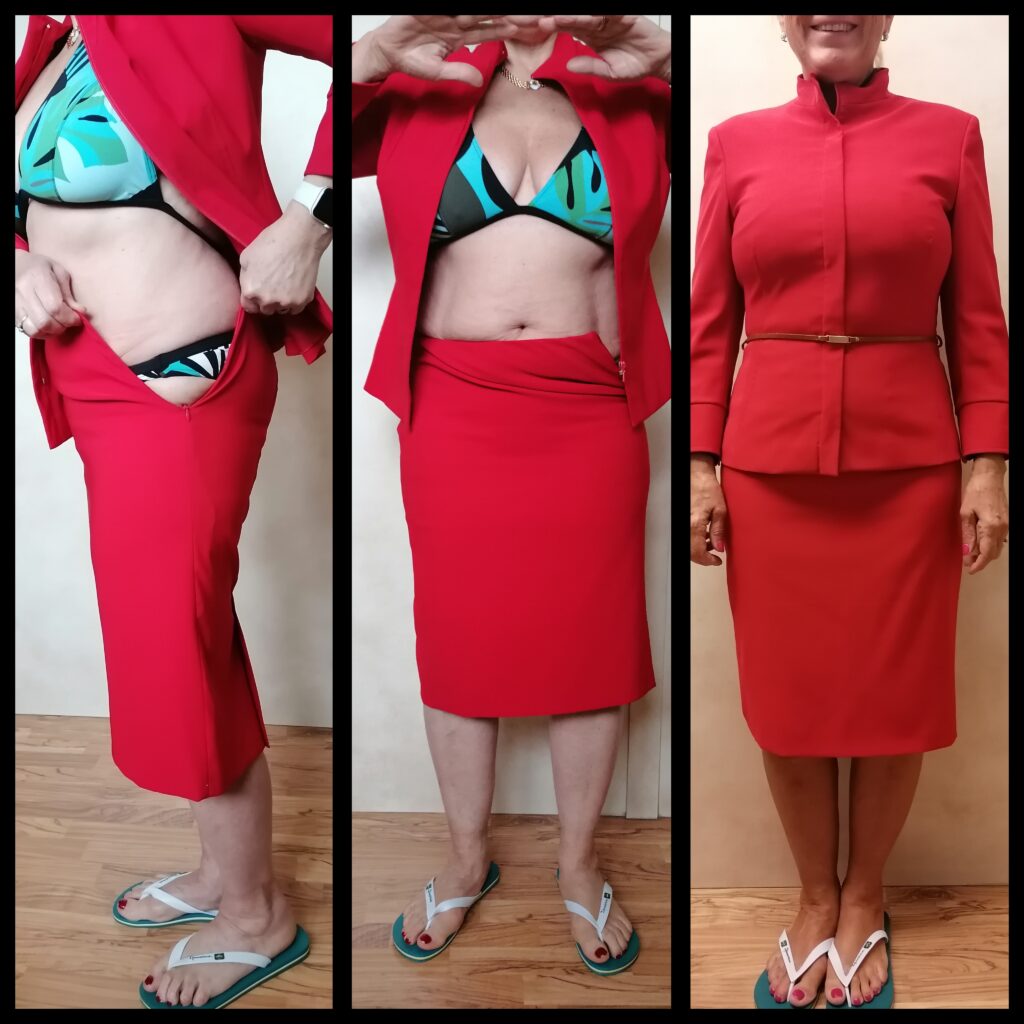 Il ventre con cm 13,5 in meno e i fianchi con cm 11,5 in meno, le hanno permesso di indossare il taielleur rosso che desiderava